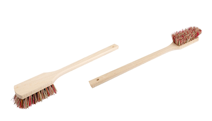 Allsidig skurebørste / skrubb med langt skaft, total lengde 45 cm. Syrebestandig.